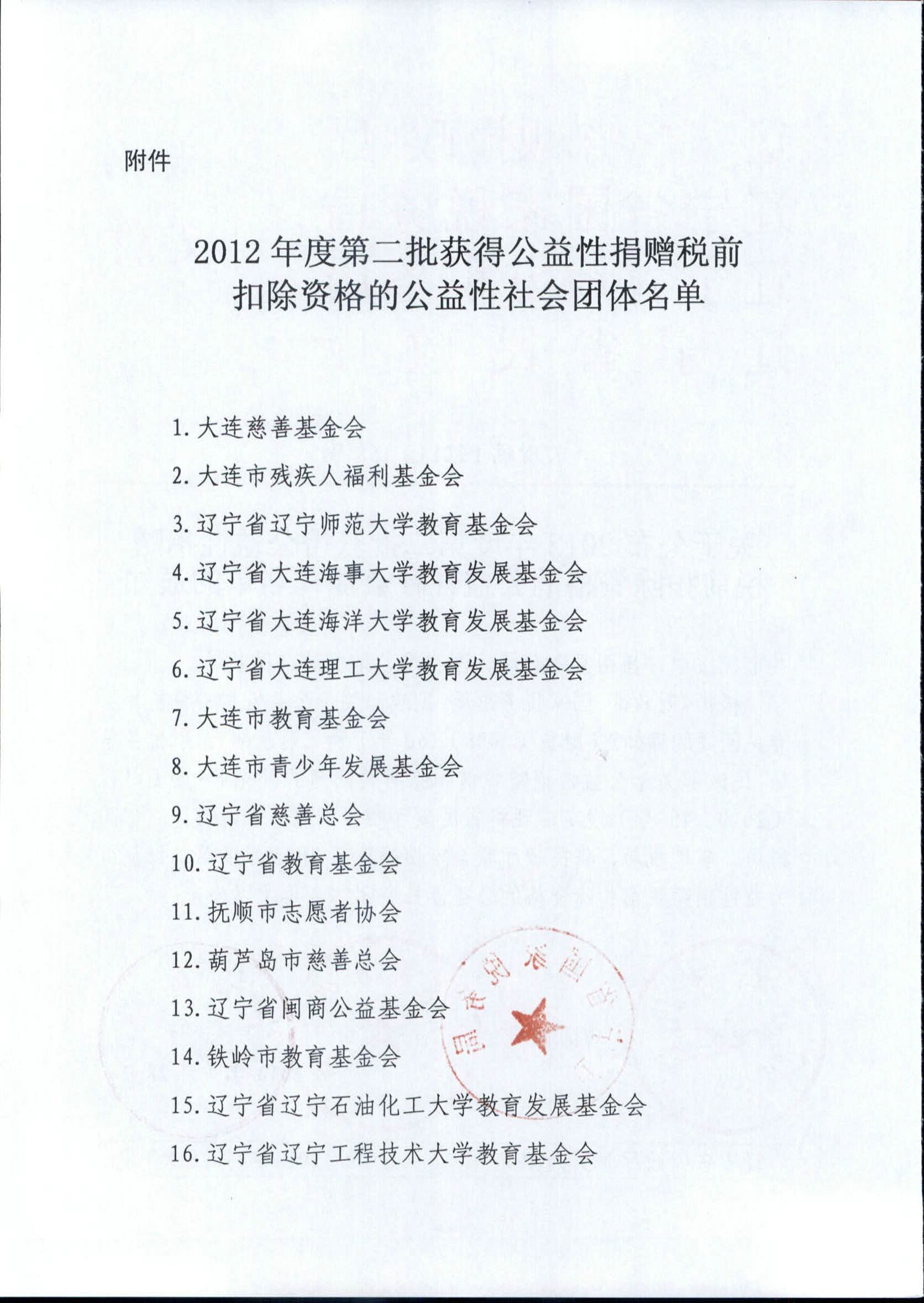 关于公布2012年度第二批获得公益性捐赠税前扣除资格的公益性社会团体名单的通知